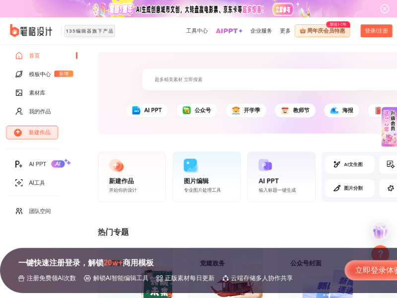 无论你是需要为社交媒体制作吸引眼球的图片,还是为商业活动设计专业的宣传海报,“重点突出笔格设计”都能满足你的需求。该编辑器提供了多种预设模板,用户可以在模板的基础上进行自定义,快速产生高质量的商业视觉效果。